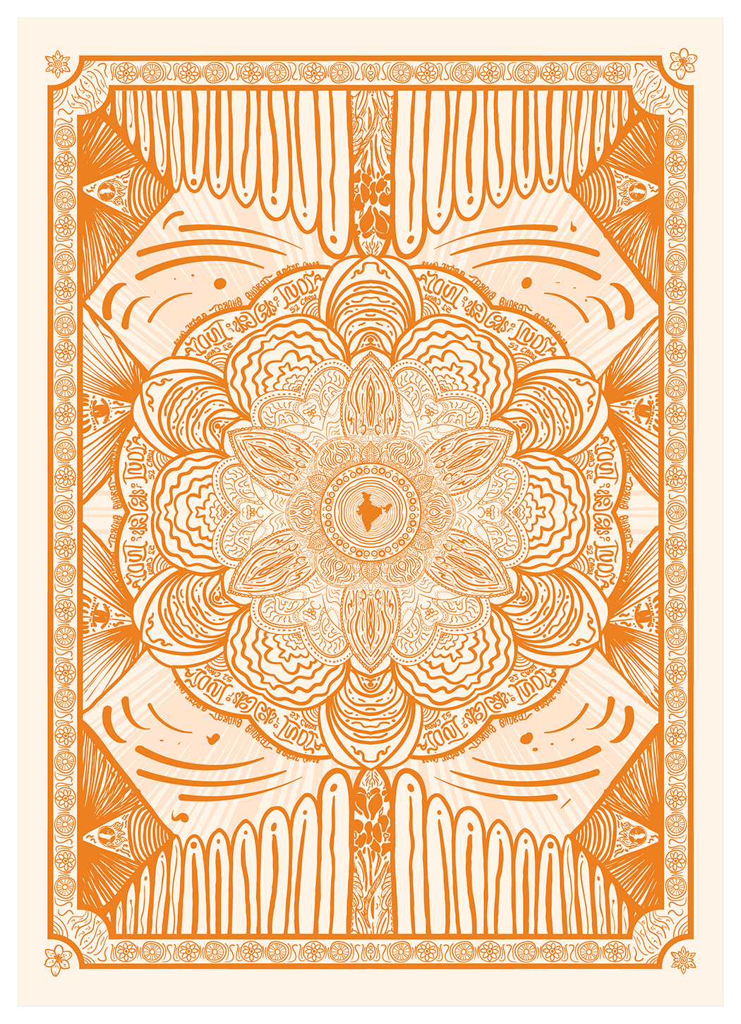 The card back is a delicate Indian 6-sided mandala. While the faces feature the Hindu Trinity, Brahma, Vishnu & Shiva. The suits and type were handcrafted to match the general style, lastly the sides of the card got expressive patterns inspired by India’s most prominent creation, Numbers. And cities, temples and places I’ve explored myself.